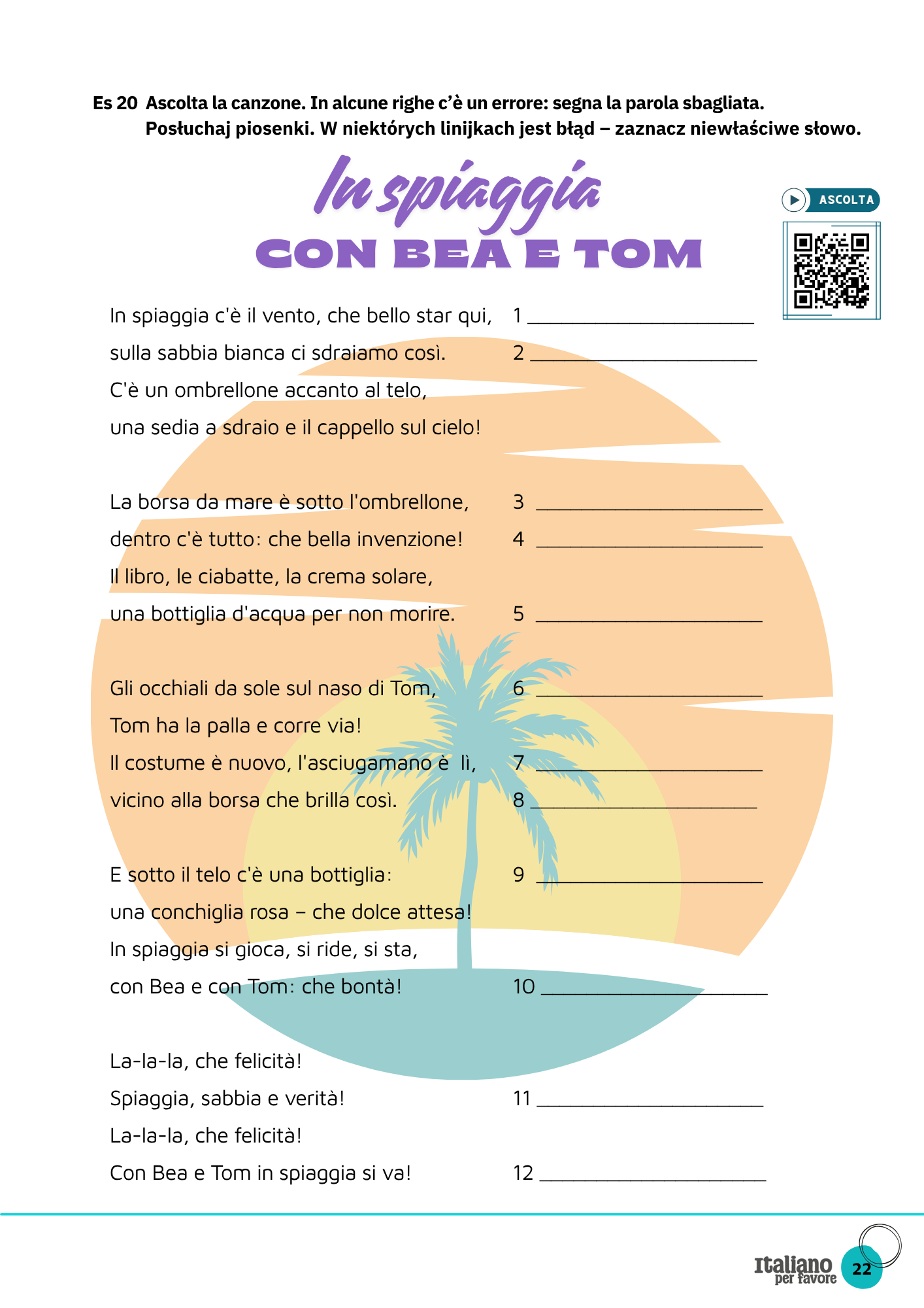 Piosenkę do słuchania i uzupełniania — idealna na zapamiętanie zdań z c’è / ci sono!