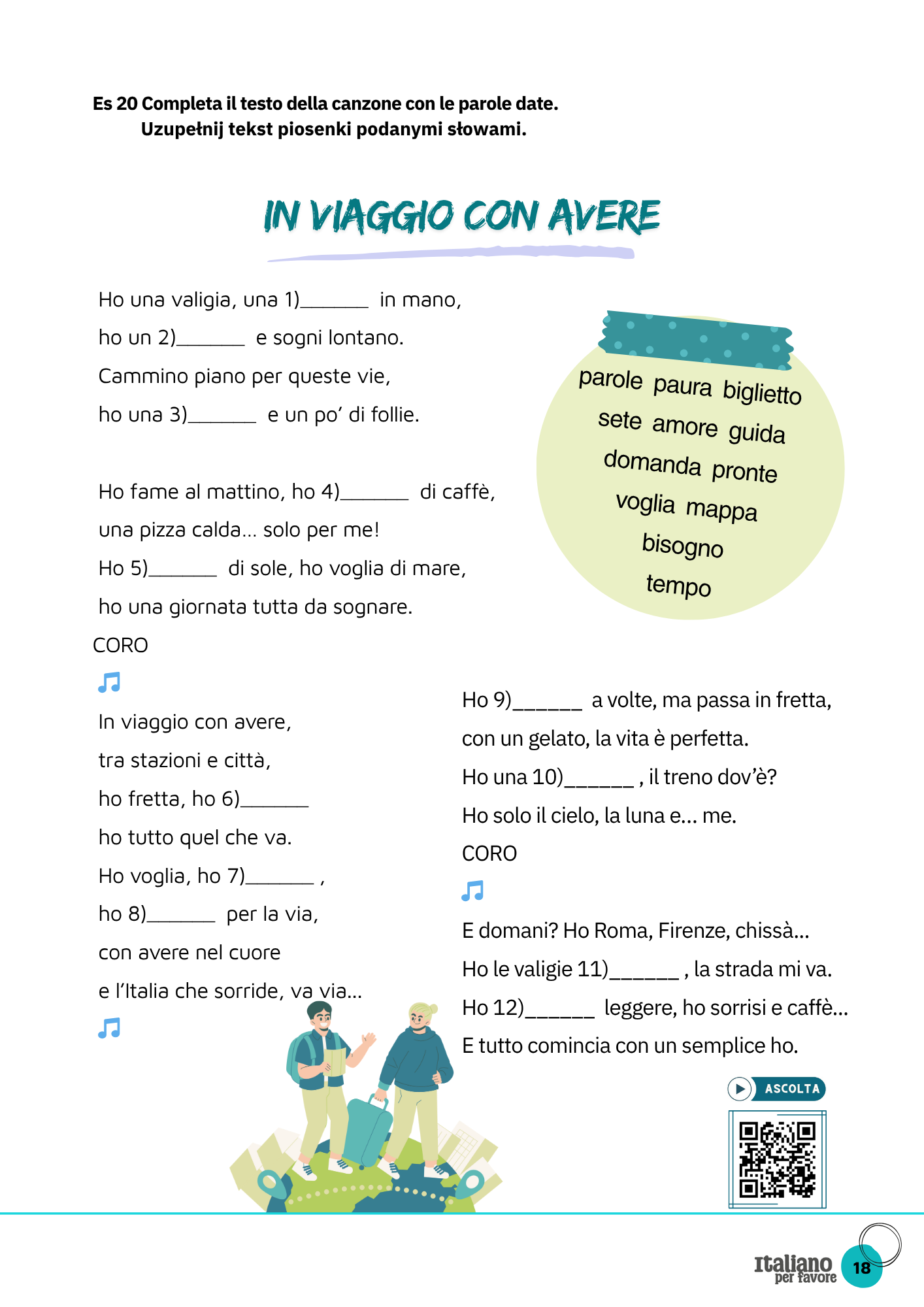🎵 zabawne ćwiczenie z piosenką (In viaggio con avere)