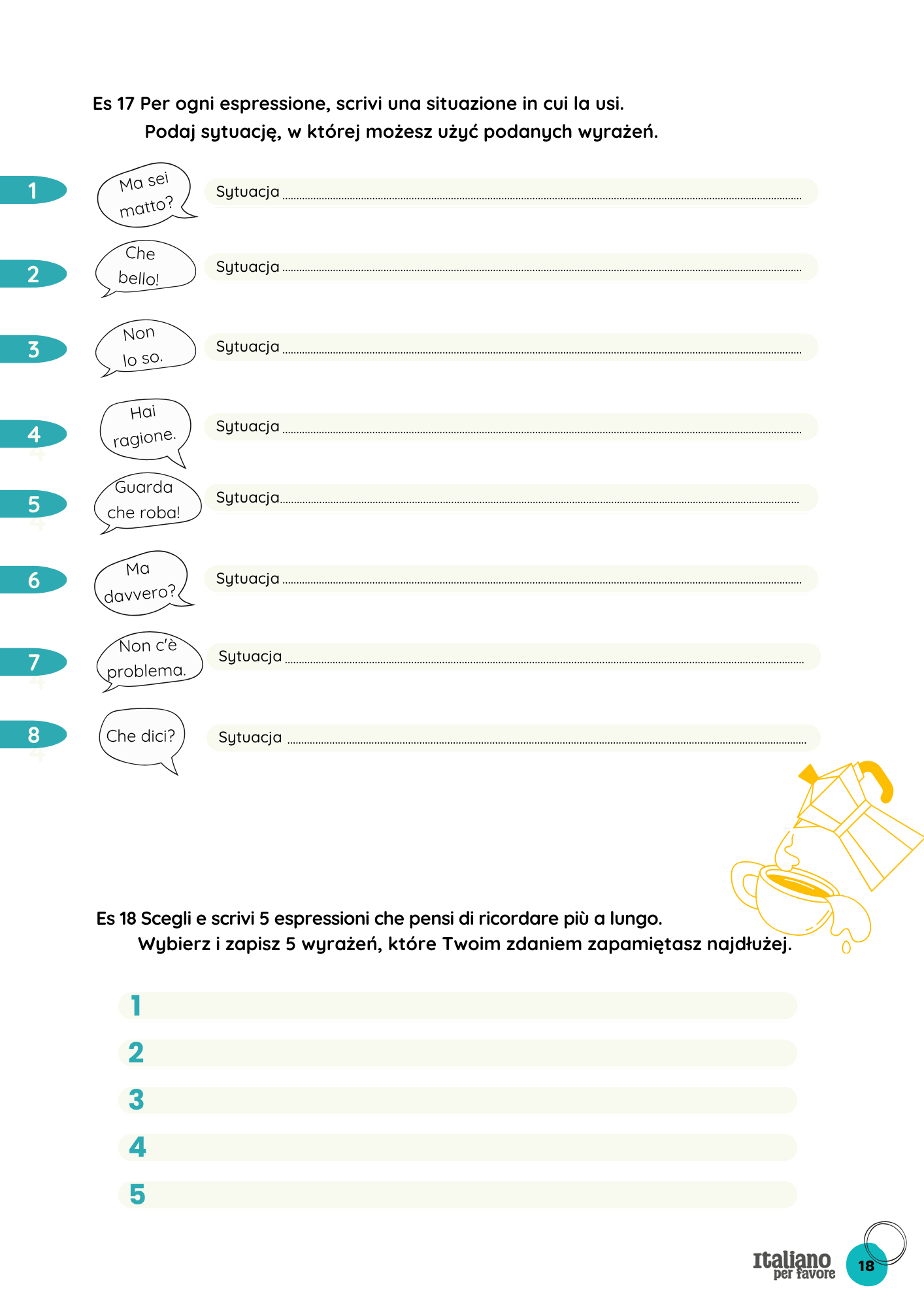 „Ma davvero?” to mały formatem, ale wielki możliwościami zeszyt ćwiczeń. Idealny, by w końcu wejść w rozmowę po włosku — pewnie, spontanicznie i z uśmiechem.